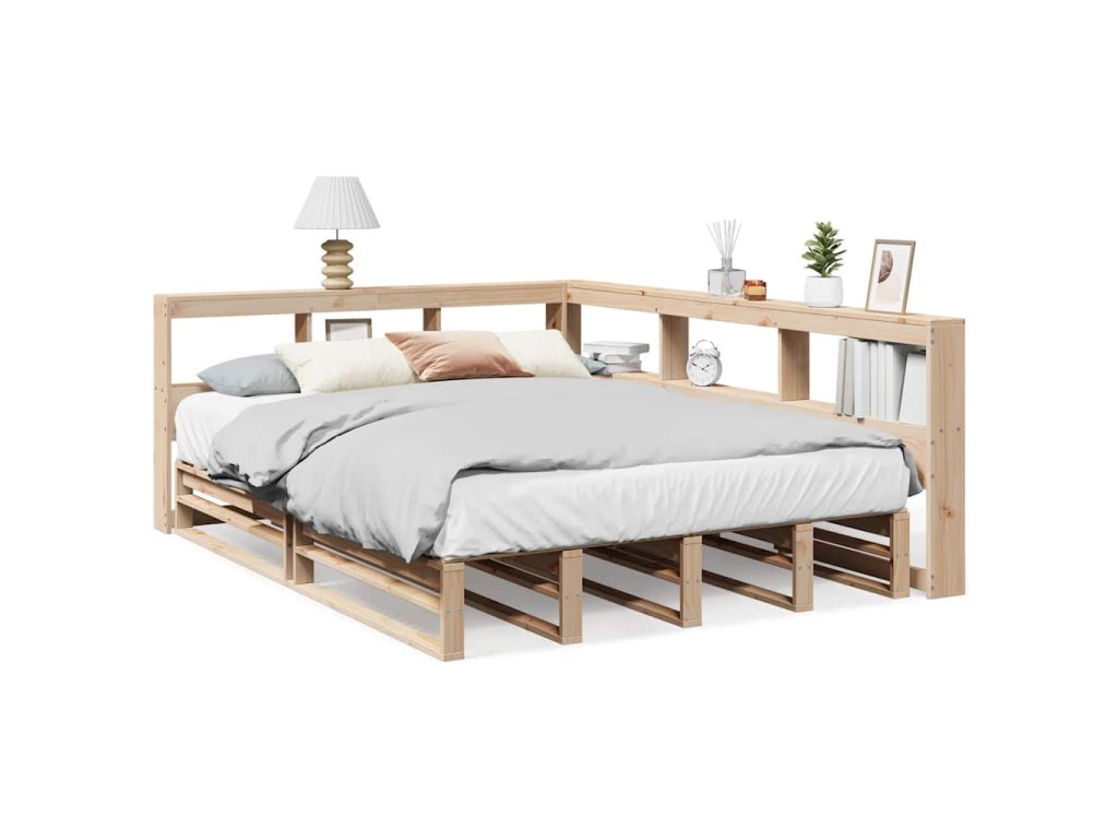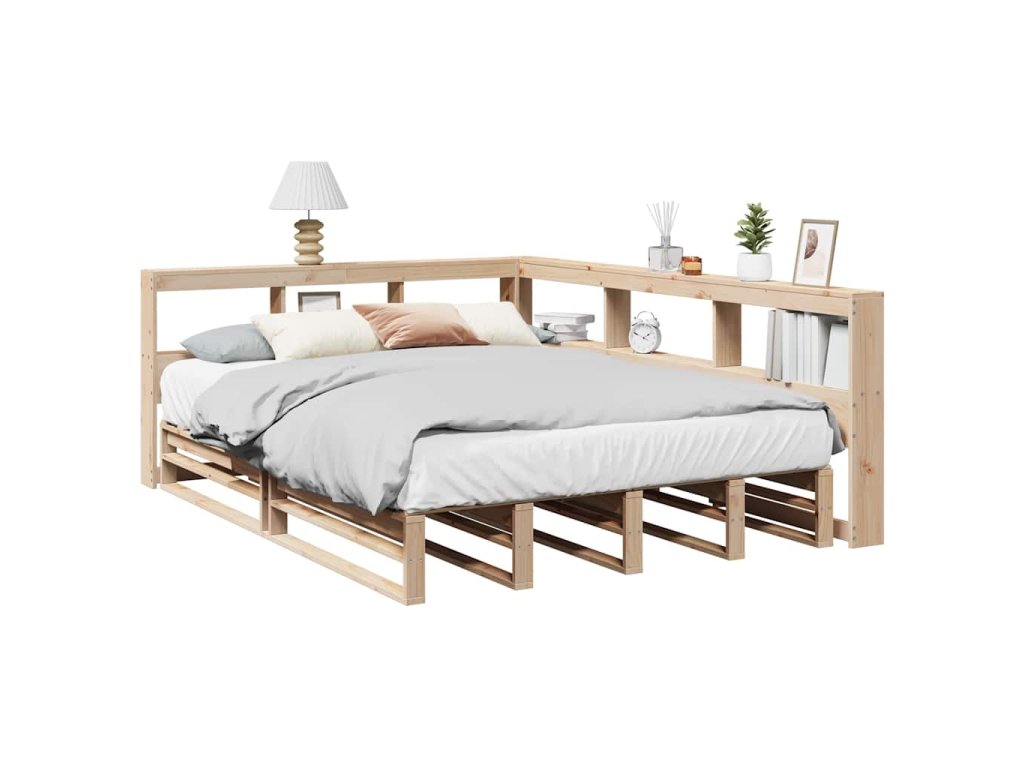 Postel s knihovnou bez matrace 135 x 190 cm masivní borovice 3324514