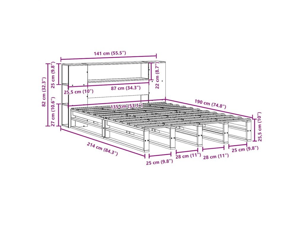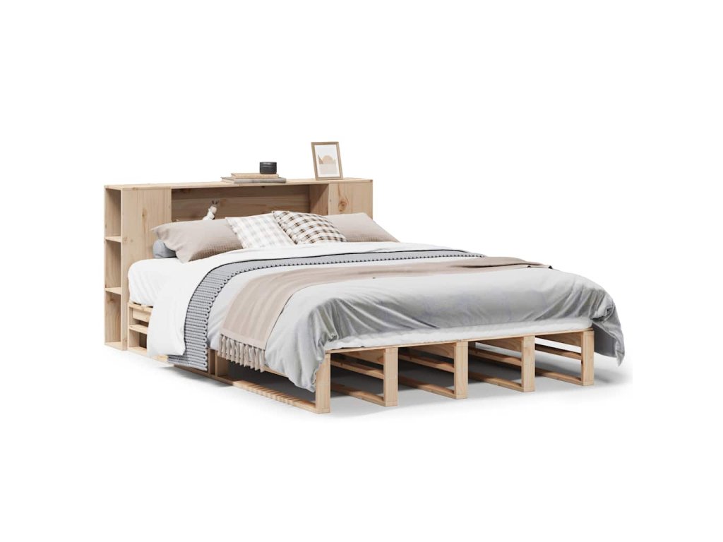 Postel s knihovnou bez matrace 135 x 190 cm masivní dřevo 3323893