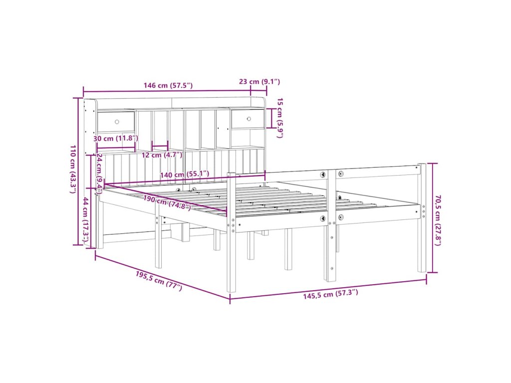 Postel s knihovnou bez matrace 140 x 190 cm masivní borovice 3322047
