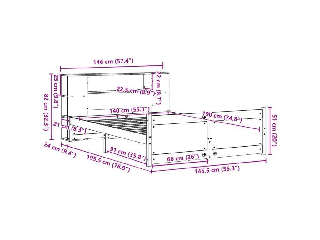 Postel s knihovnou bez matrace 140 x 190 cm masivní borovice 3322433