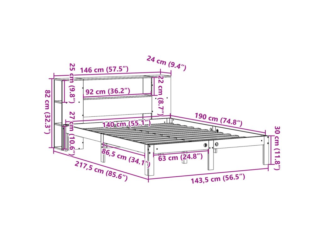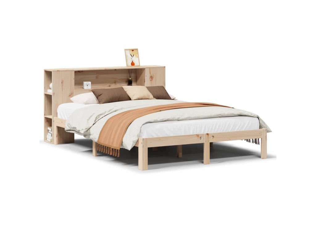 Postel s knihovnou bez matrace 140 x 190 cm masivní borovice 3322511