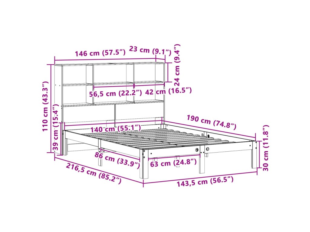 Postel s knihovnou bez matrace 140 x 190 cm masivní borovice 3322576