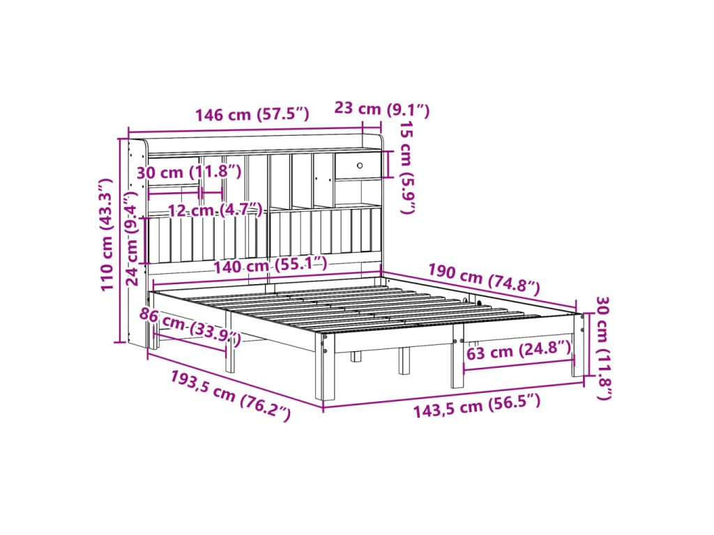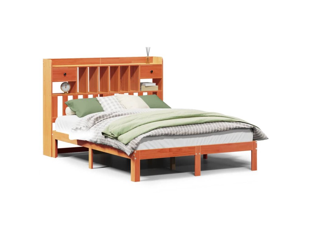 Postel s knihovnou bez matrace 140 x 190 cm masivní borovice 3322615
