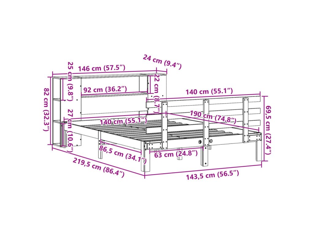 Postel s knihovnou bez matrace 140 x 190 cm masivní borovice 3322706