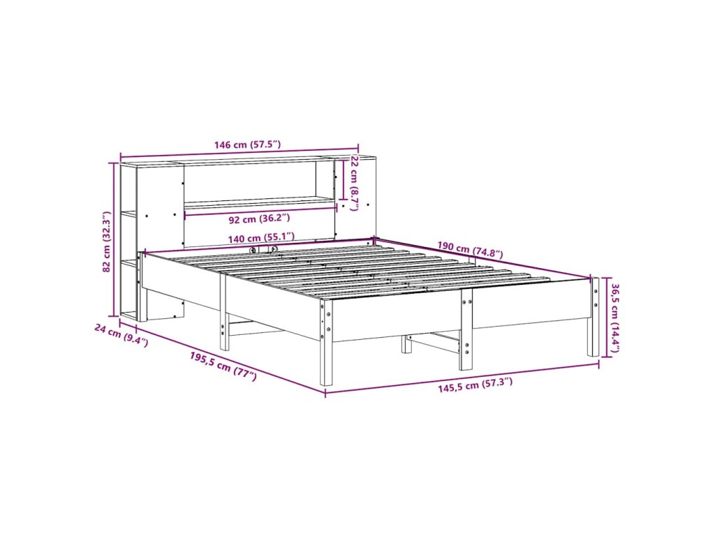 Postel s knihovnou bez matrace 140 x 190 cm masivní borovice 3322837