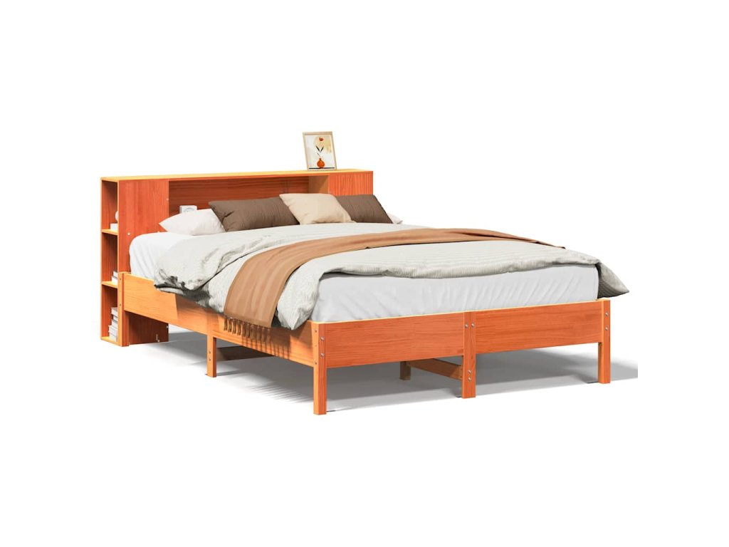 Postel s knihovnou bez matrace 140 x 190 cm masivní borovice 3322839