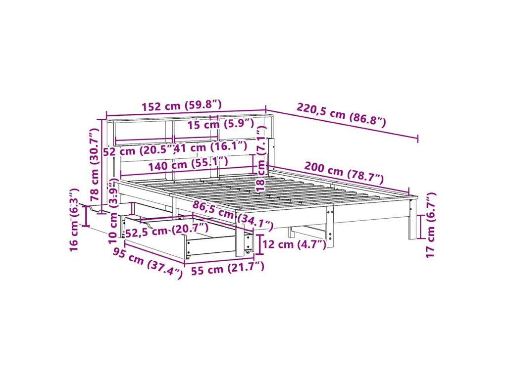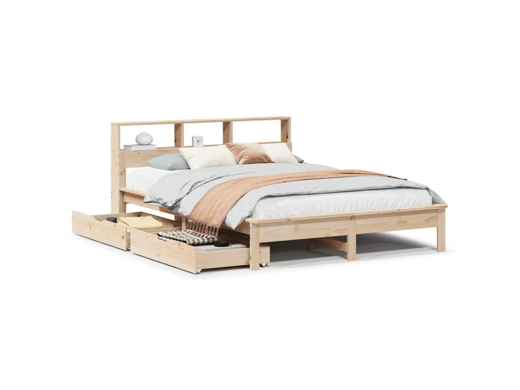 Postel s knihovnou bez matrace 140 x 200 cm masivní borovice 3309809