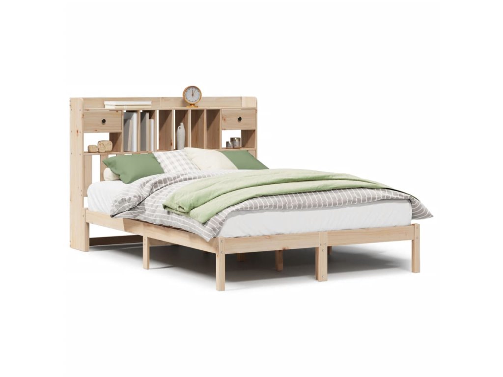 Postel s knihovnou bez matrace 140 x 200 cm masivní borovice 3321626