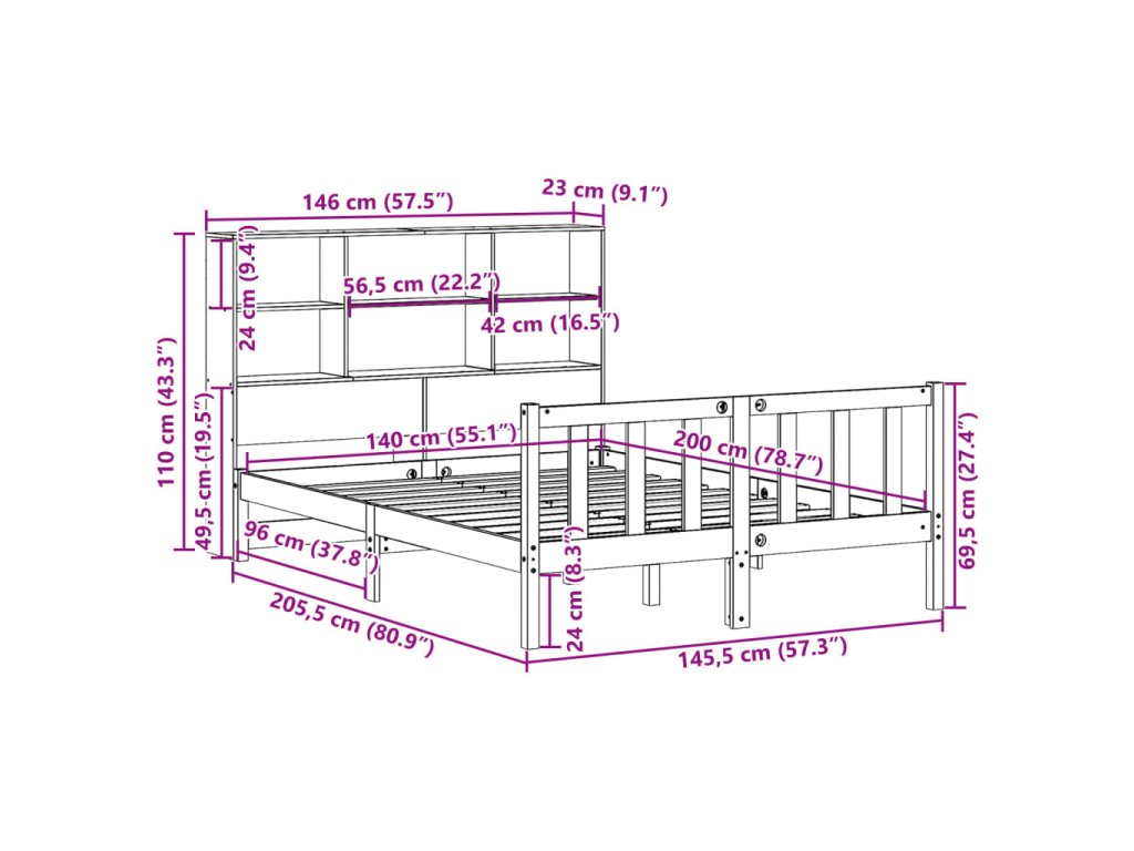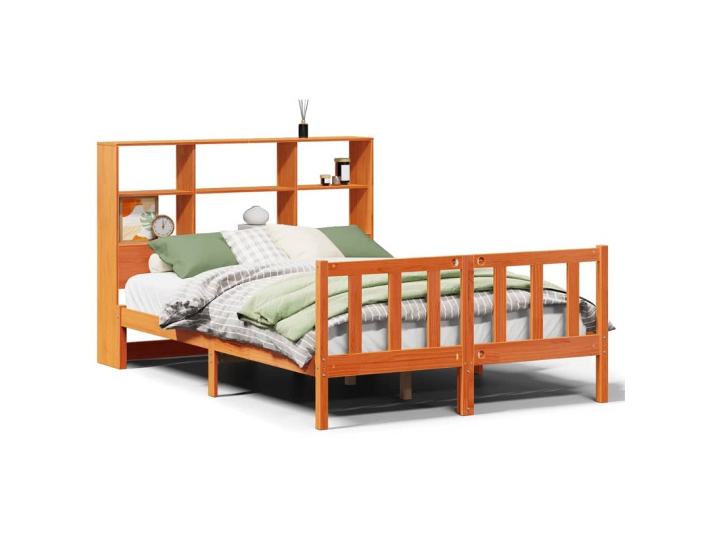Postel s knihovnou bez matrace 140 x 200 cm masivní borovice 3321722
