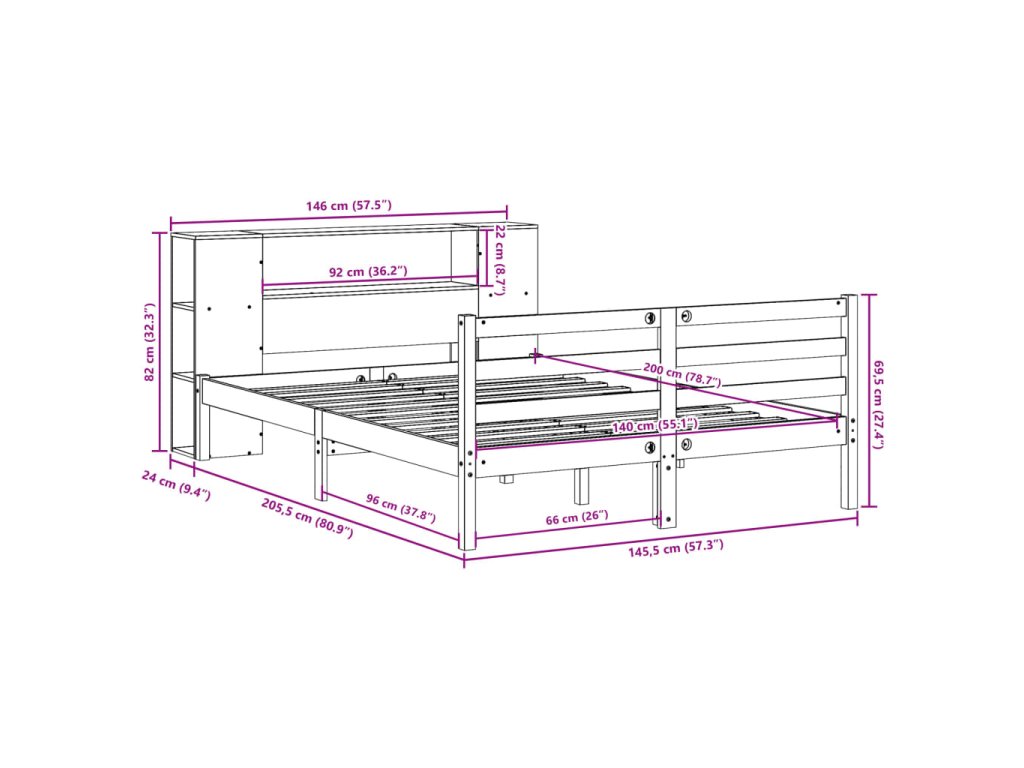 Postel s knihovnou bez matrace 140 x 200 cm masivní borovice 3321852