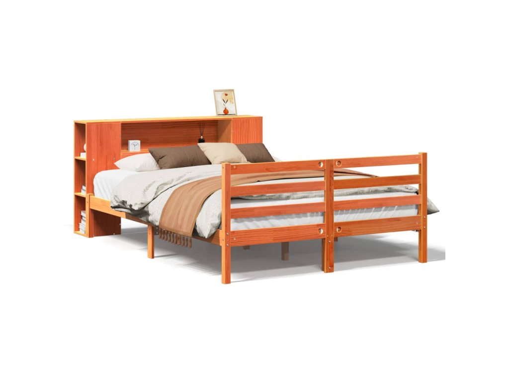 Postel s knihovnou bez matrace 140 x 200 cm masivní borovice 3321866