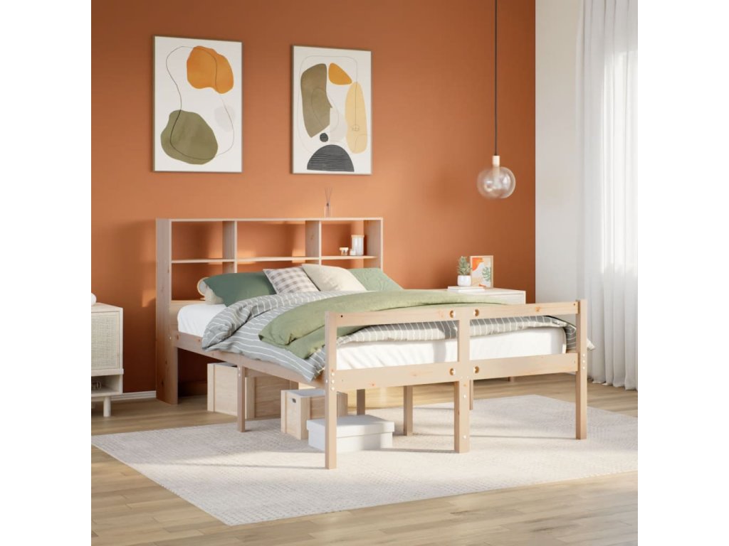 Postel s knihovnou bez matrace 140 x 200 cm masivní borovice 3322016
