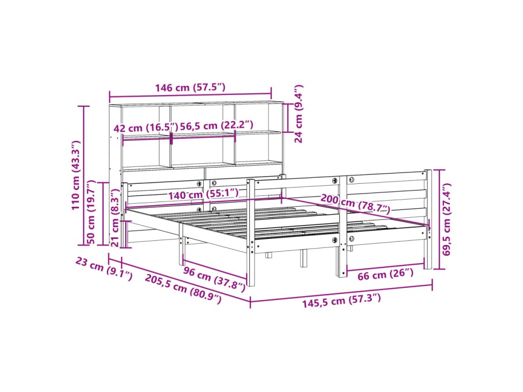 Postel s knihovnou bez matrace 140 x 200 cm masivní borovice 3322237