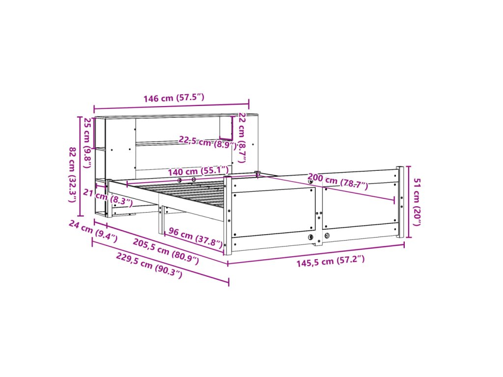 Postel s knihovnou bez matrace 140 x 200 cm masivní borovice 3322437
