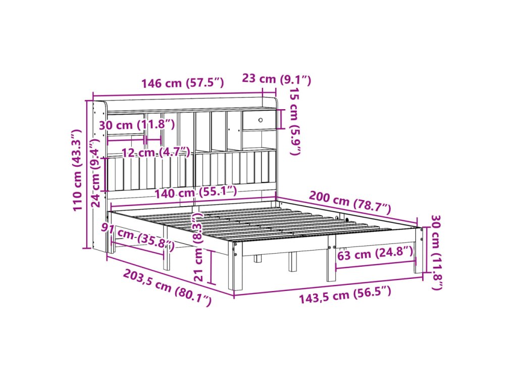 Postel s knihovnou bez matrace 140 x 200 cm masivní borovice 3322619