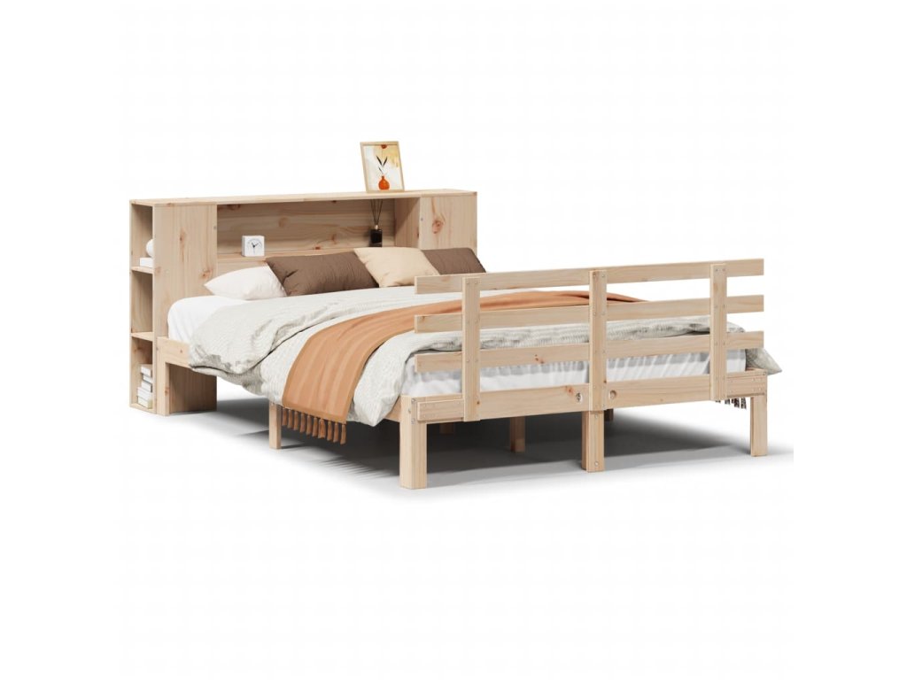 Postel s knihovnou bez matrace 140 x 200 cm masivní borovice 3322710