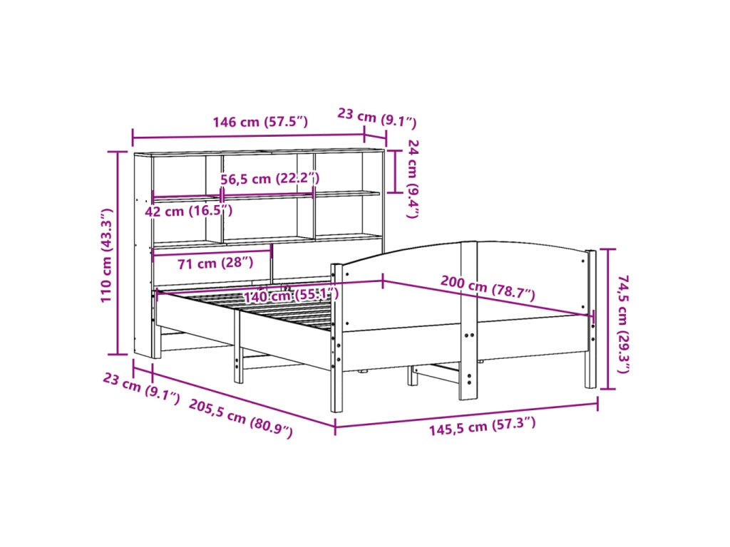 Postel s knihovnou bez matrace 140 x 200 cm masivní borovice 3323104