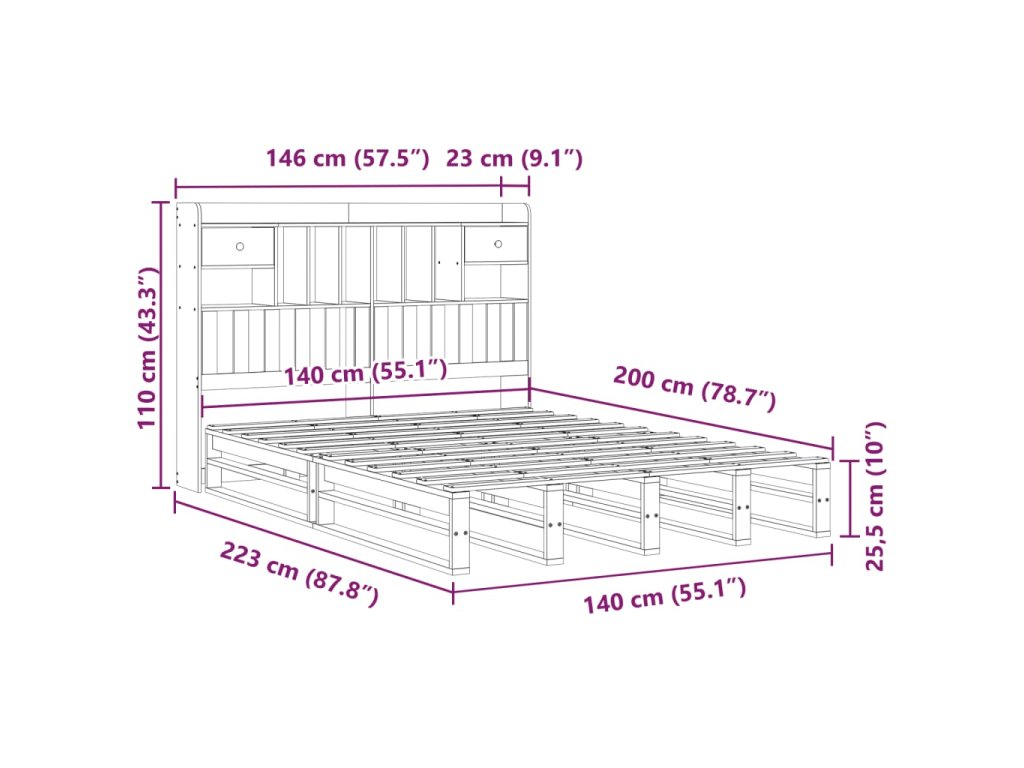 Postel s knihovnou bez matrace 140 x 200 cm masivní borovice 3323959