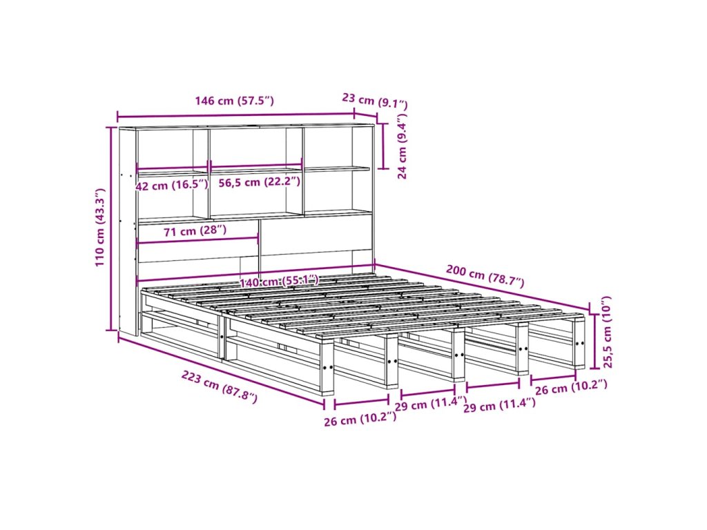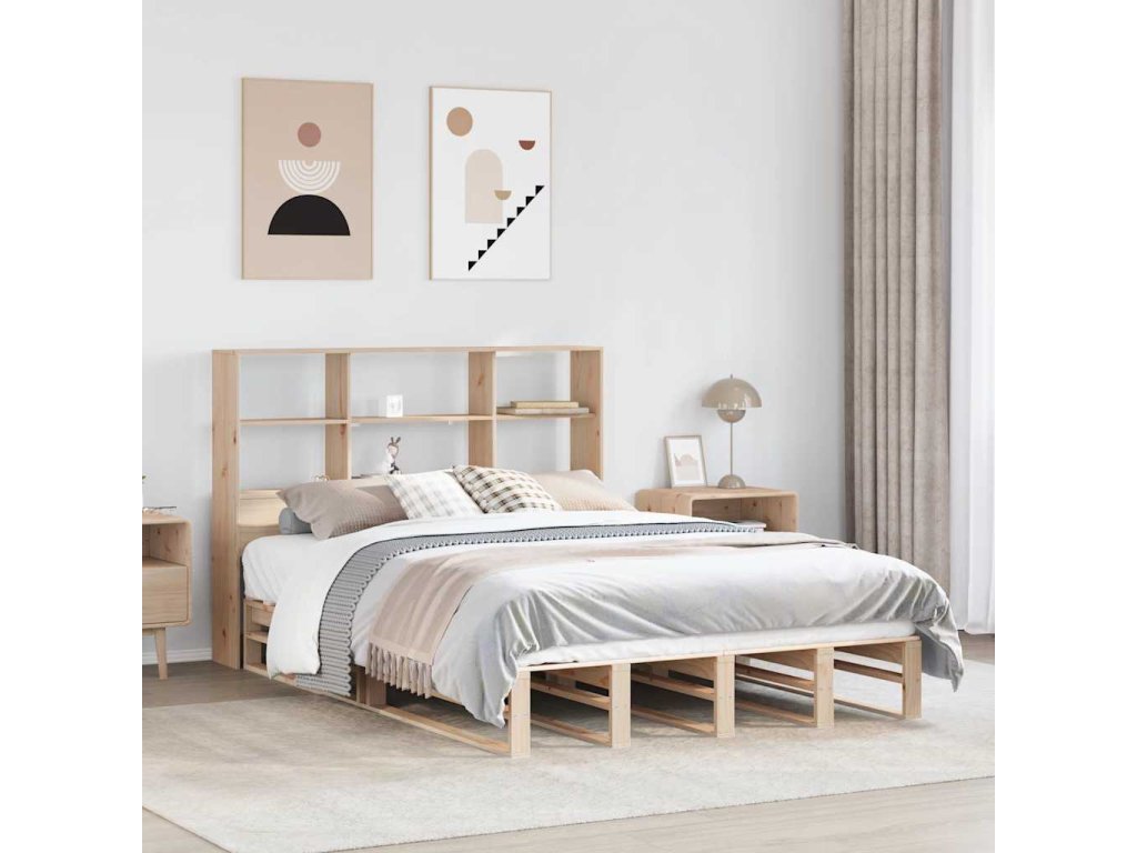 Postel s knihovnou bez matrace 140 x 200 cm masivní dřevo 3323920