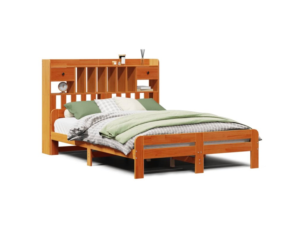 Postel s knihovnou bez matrace 150 x 200 cm masivní borovice 3308881