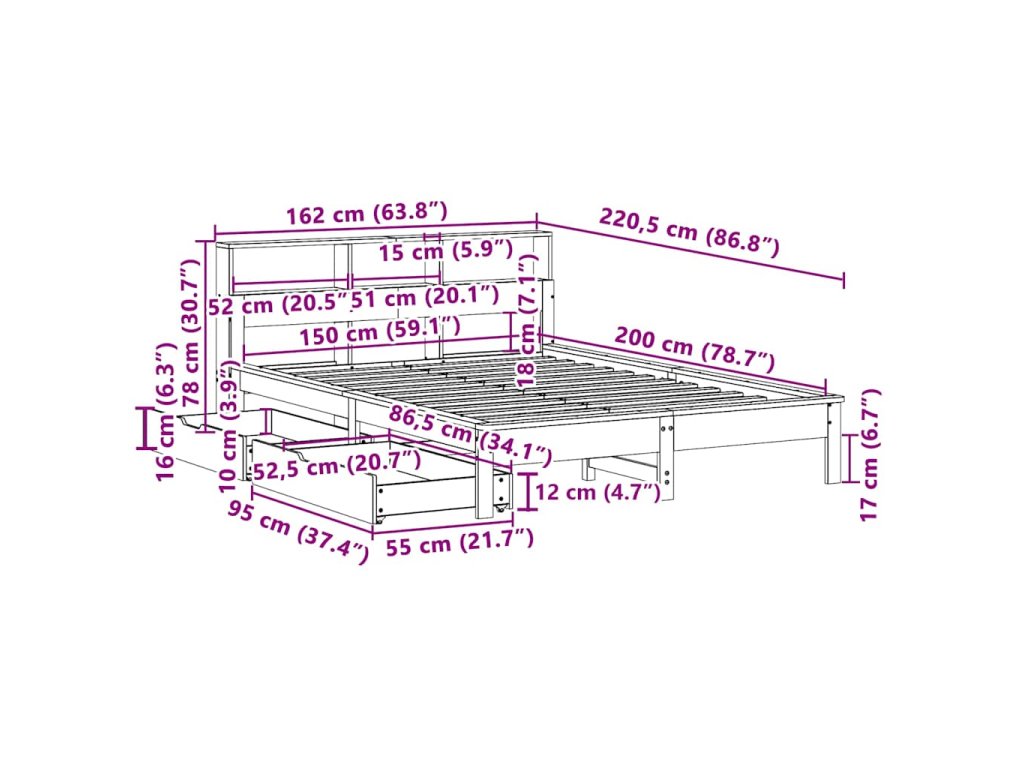 - Rozměry: 220,5 x 162 x 78 cm (D x Š x V)