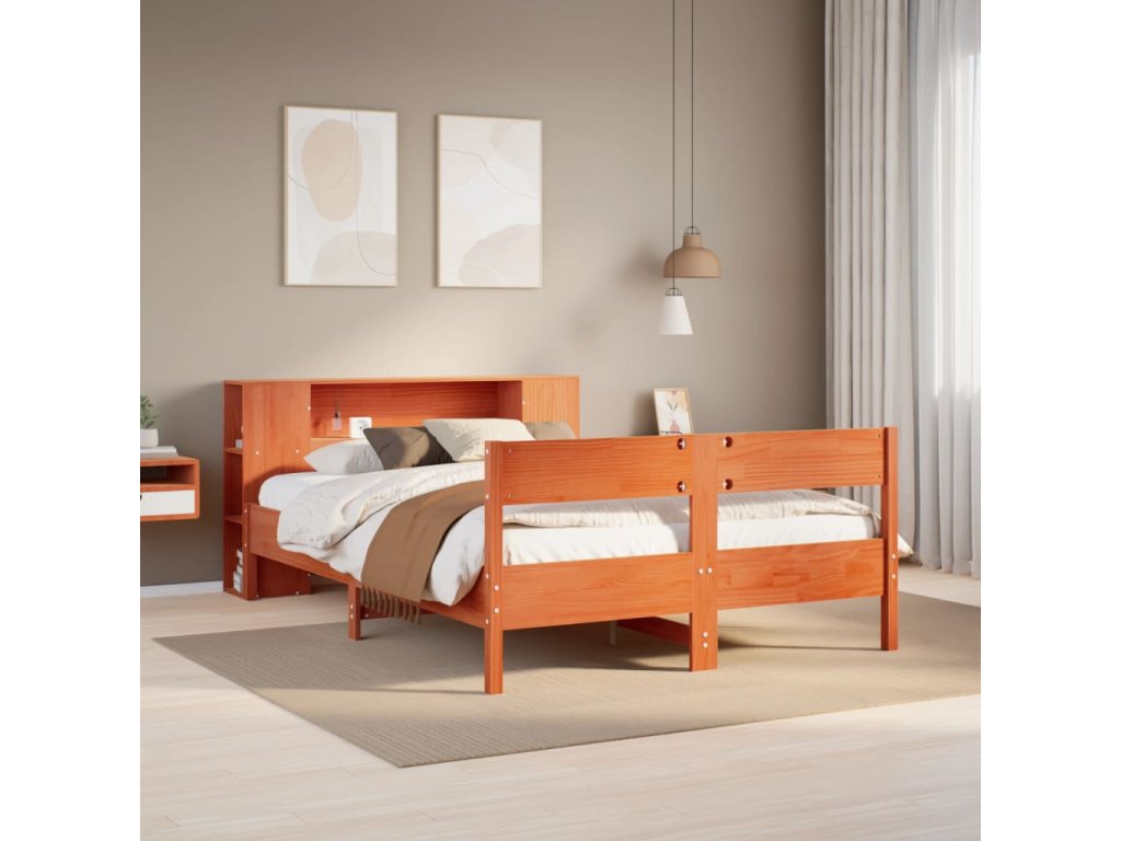 Postel s knihovnou bez matrace 150 x 200 cm masivní borovice 3322947