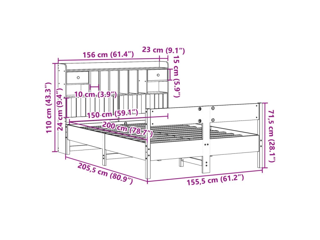 Postel s knihovnou bez matrace 150 x 200 cm masivní borovice 3323025