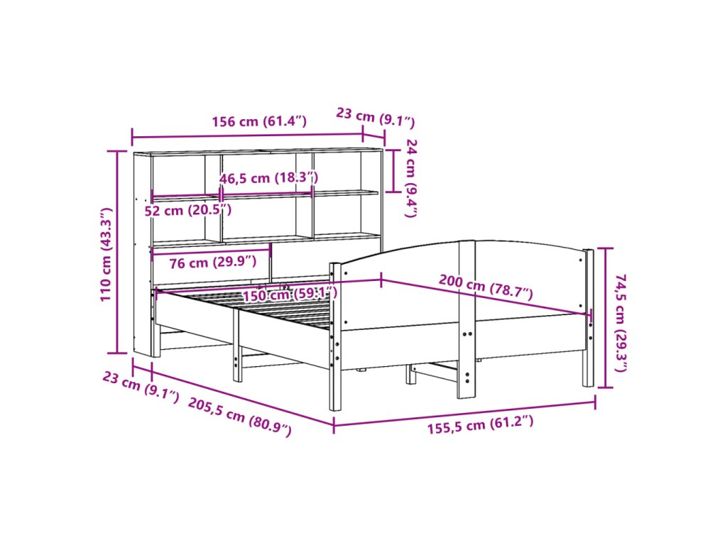 Postel s knihovnou bez matrace 150 x 200 cm masivní borovice 3323101