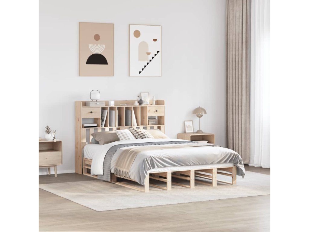 Postel s knihovnou bez matrace 150 x 200 cm masivní borovice 3323962