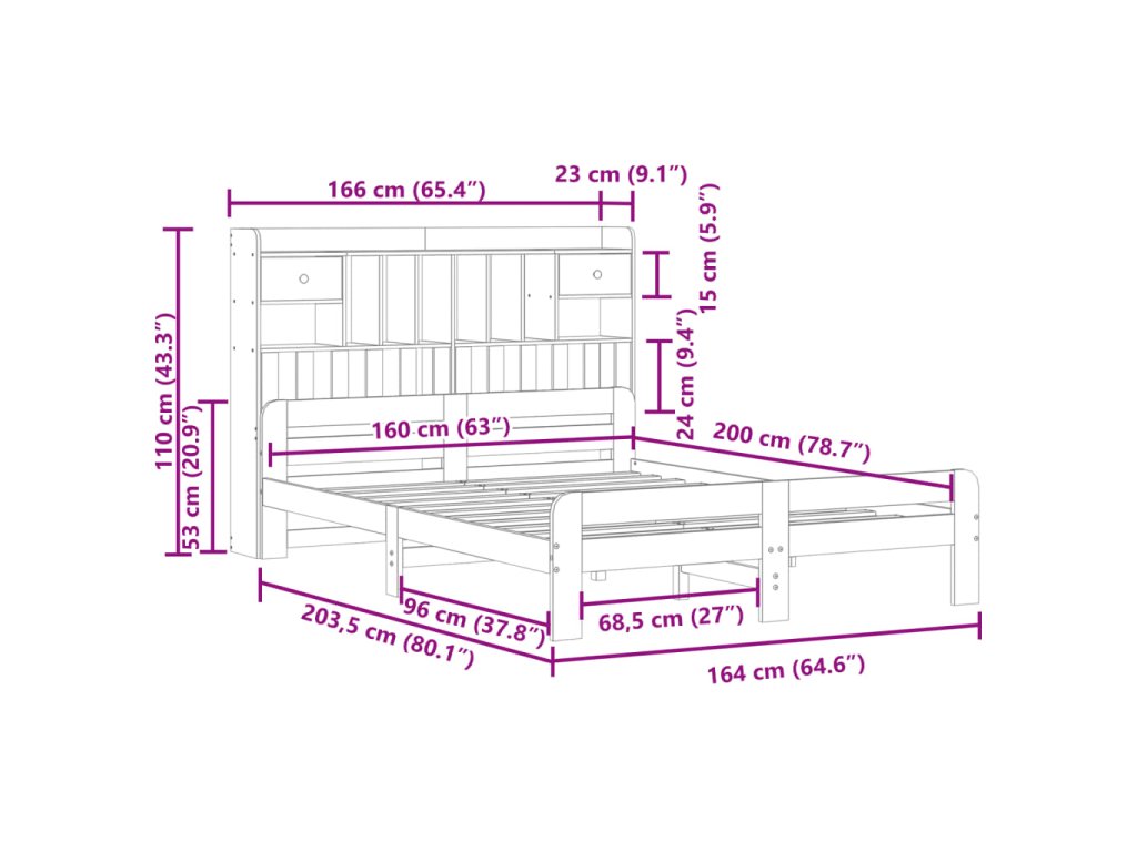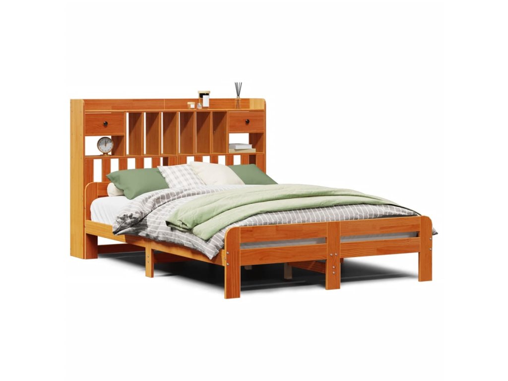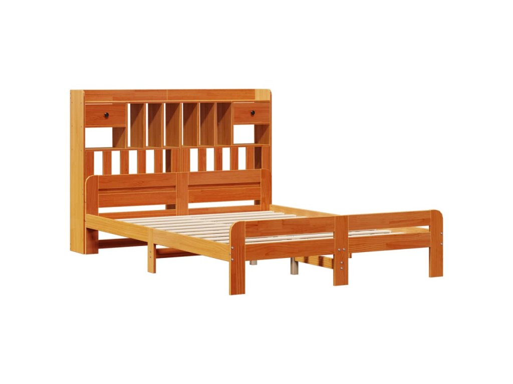 Postel s knihovnou bez matrace 160 x 200 cm masivní borovice 3308878