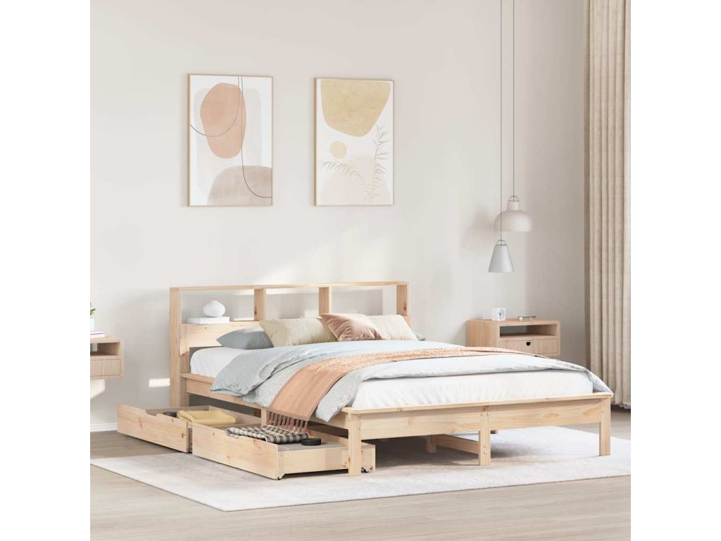 Postel s knihovnou bez matrace 160 x 200 cm masivní borovice 3309803