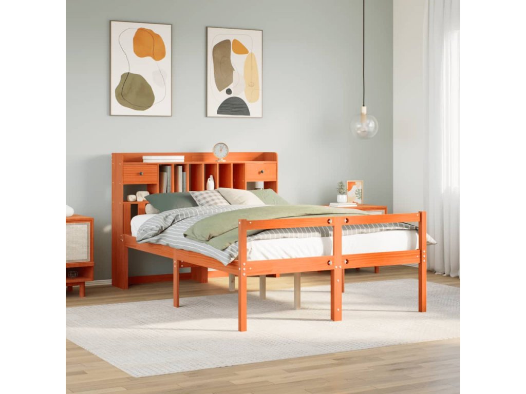 Postel s knihovnou bez matrace 160 x 200 cm masivní borovice 3322075