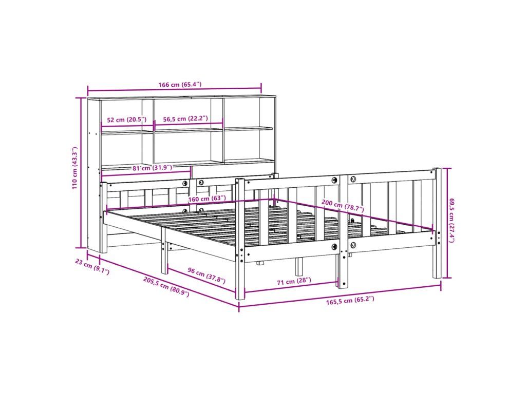 Postel s knihovnou bez matrace 160 x 200 cm masivní borovice 3322137