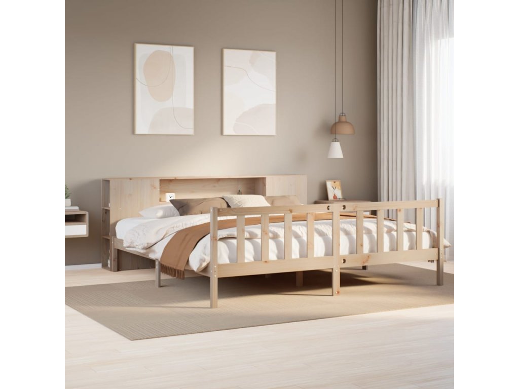 Postel s knihovnou bez matrace 180 x 200 cm masivní borovice 3321663