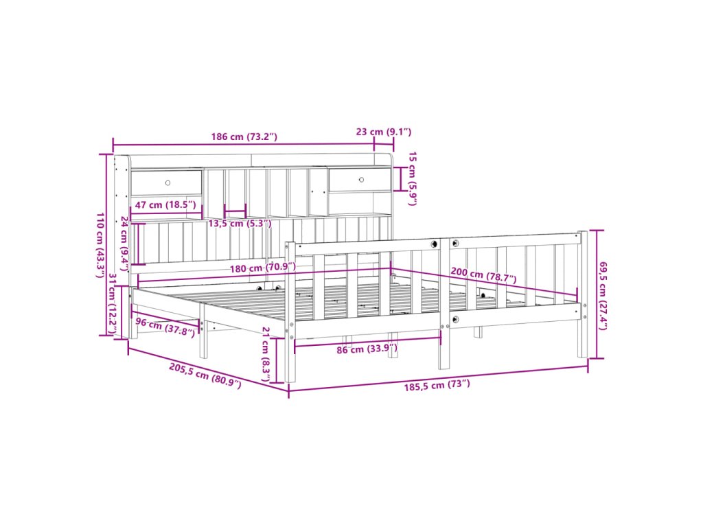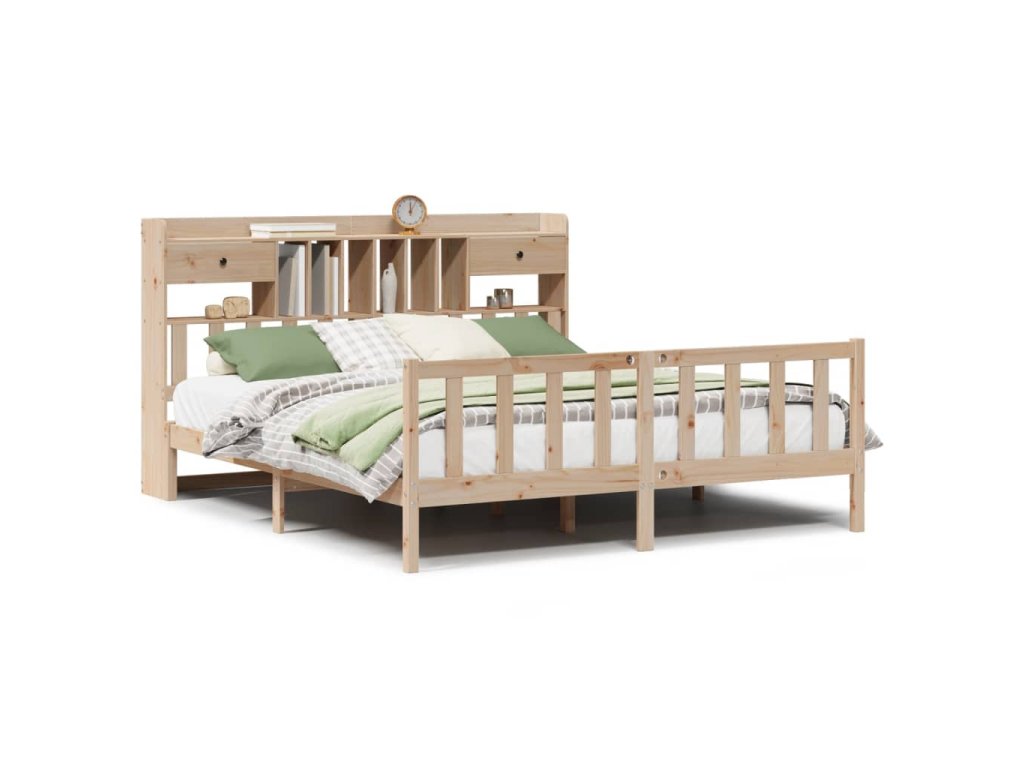 Postel s knihovnou bez matrace 180 x 200 cm masivní borovice 3321749