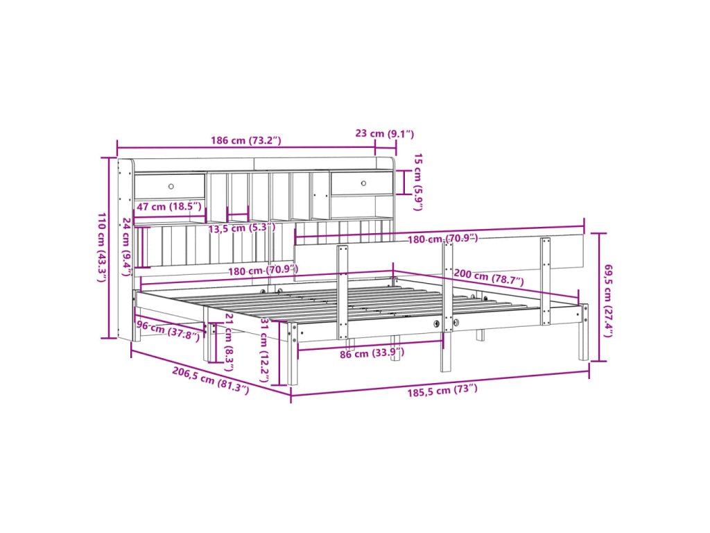 Postel s knihovnou bez matrace 180 x 200 cm masivní borovice 3321840