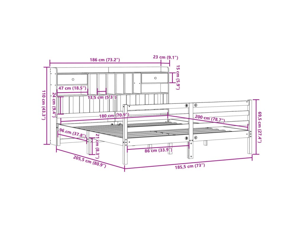 Postel s knihovnou bez matrace 180 x 200 cm masivní borovice 3321944