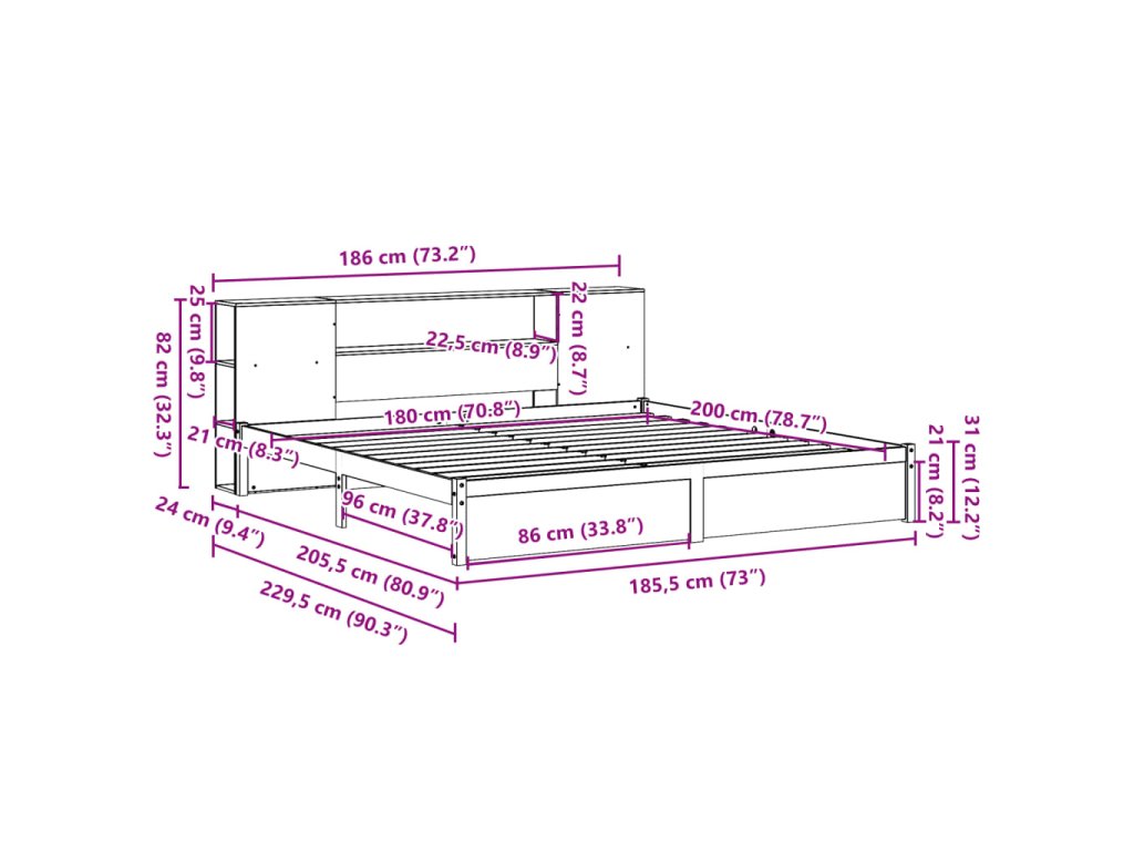 Postel s knihovnou bez matrace 180 x 200 cm masivní borovice 3322365