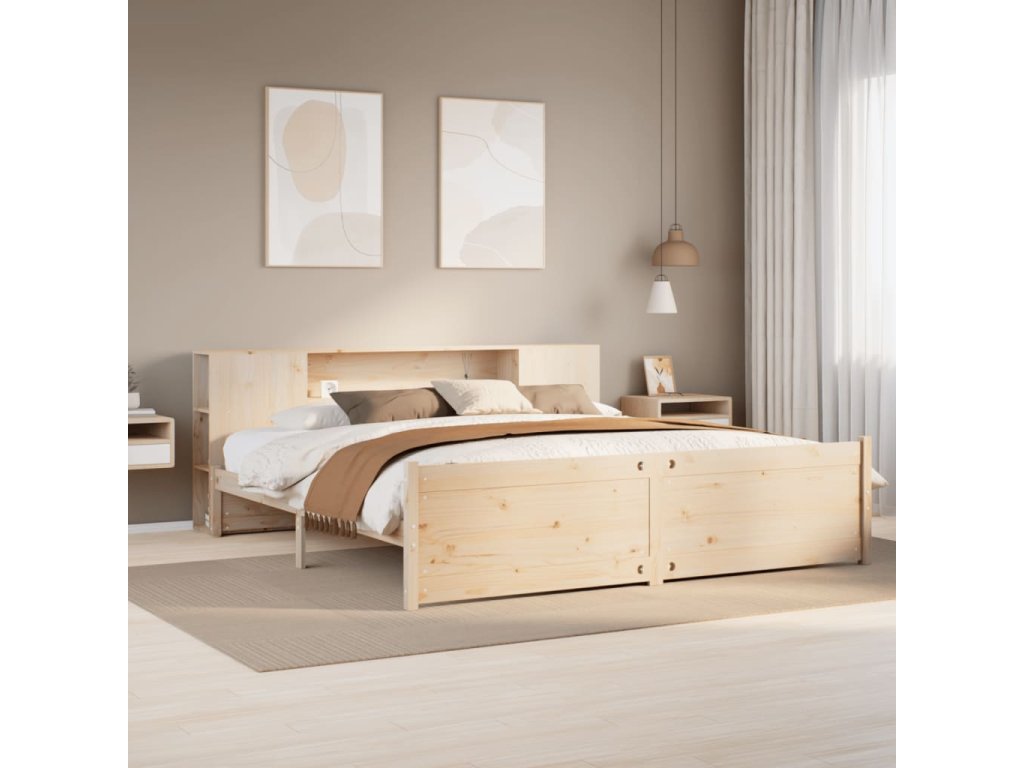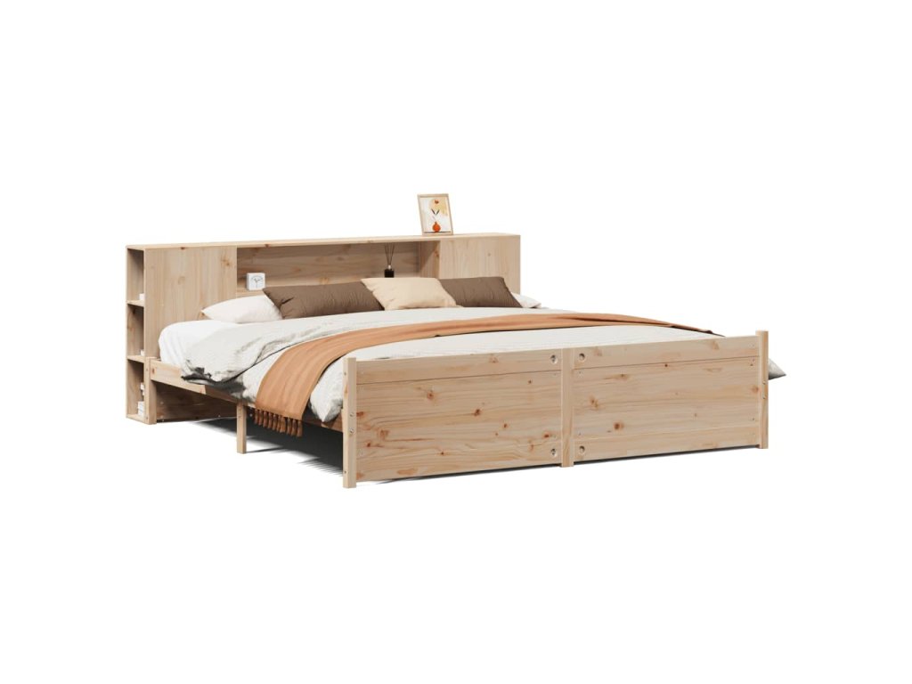 Postel s knihovnou bez matrace 180 x 200 cm masivní borovice 3322443