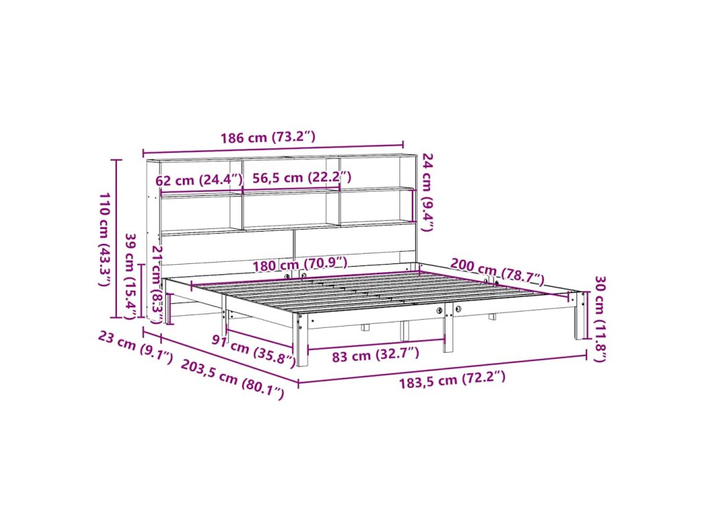Postel s knihovnou bez matrace 180 x 200 cm masivní borovice 3322583