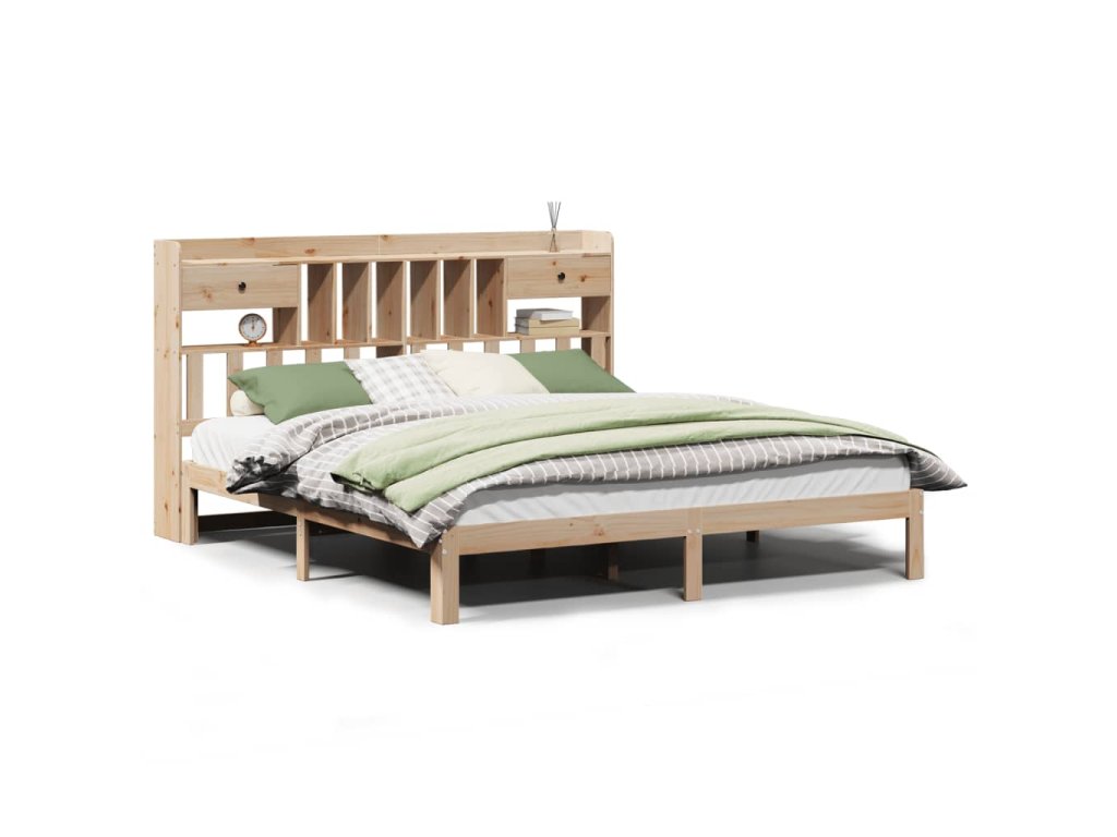 Postel s knihovnou bez matrace 180 x 200 cm masivní borovice 3322607