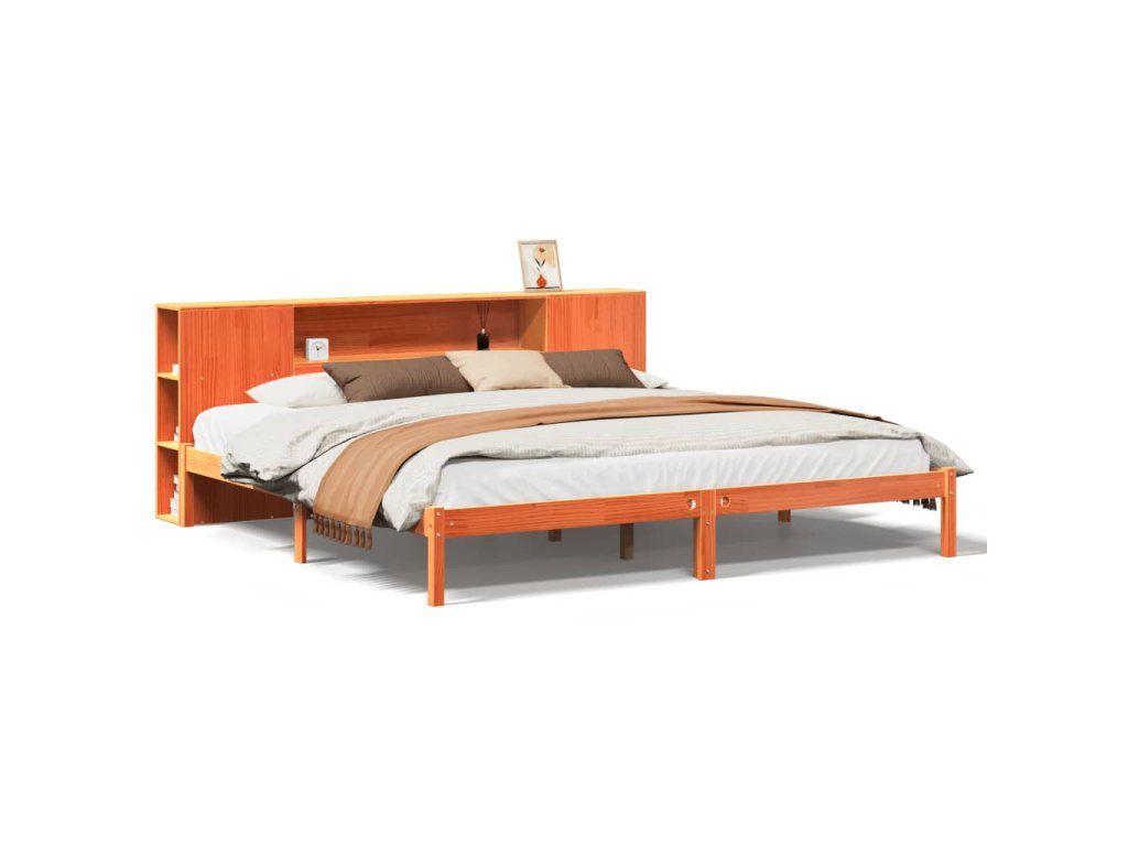 Postel s knihovnou bez matrace 180 x 200 cm masivní borovice 3322824