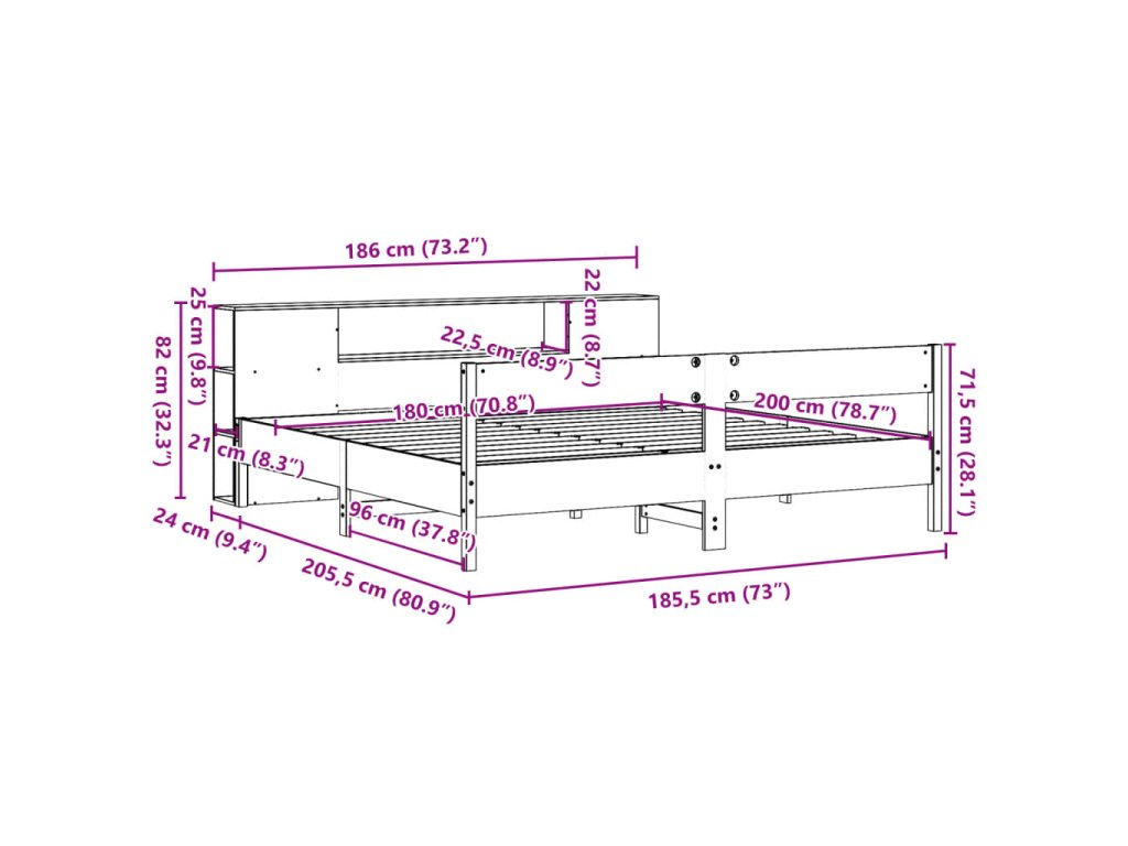 Postel s knihovnou bez matrace 180 x 200 cm masivní borovice 3322941