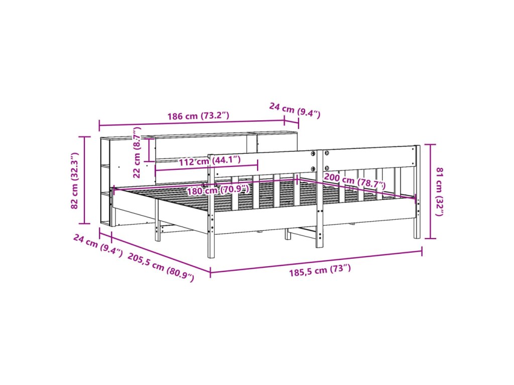 Postel s knihovnou bez matrace 180 x 200 cm masivní borovice 3323173