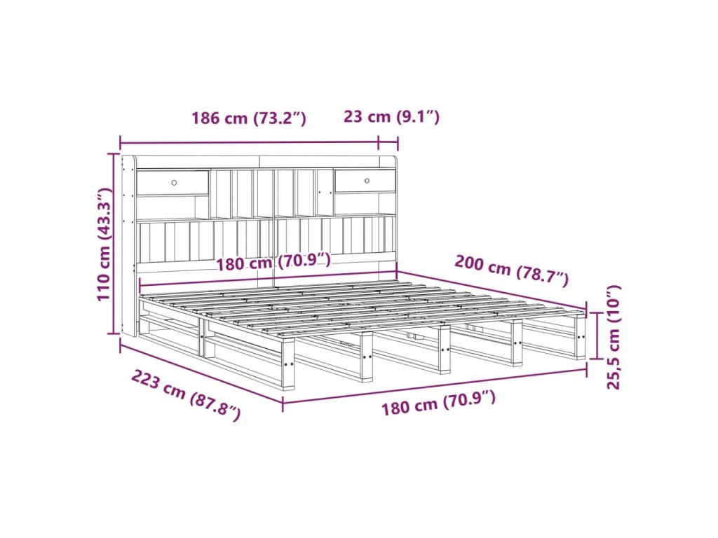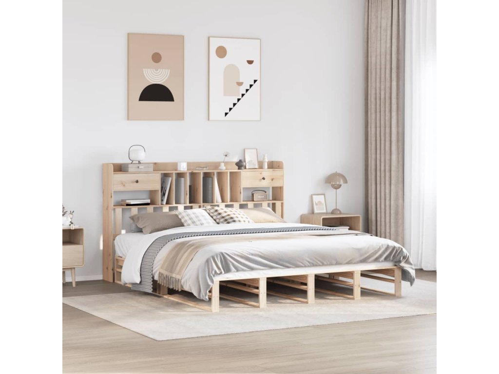 Postel s knihovnou bez matrace 180 x 200 cm masivní borovice 3323968