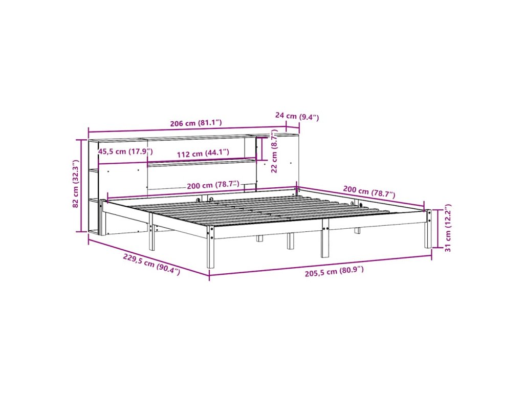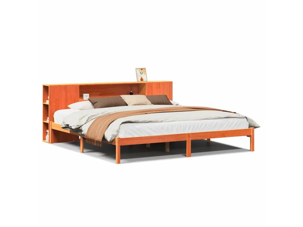 Postel s knihovnou bez matrace 200 x 200 cm masivní borovice 3321558