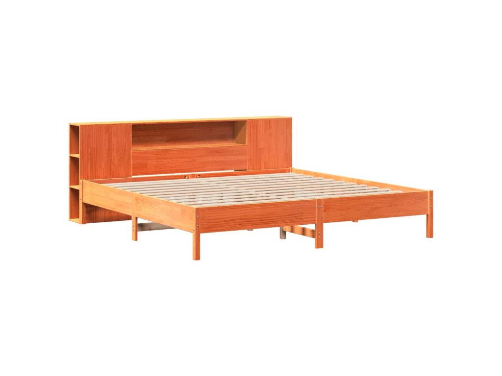 Postel s knihovnou bez matrace 200 x 200 cm masivní borovice 3322821
