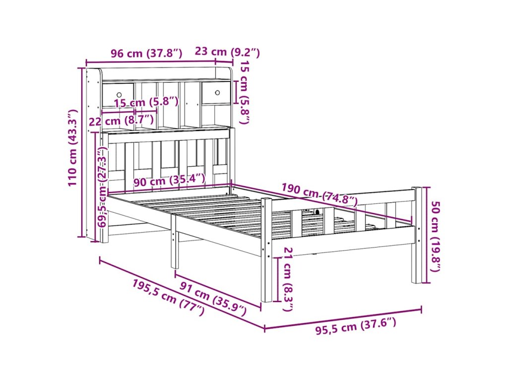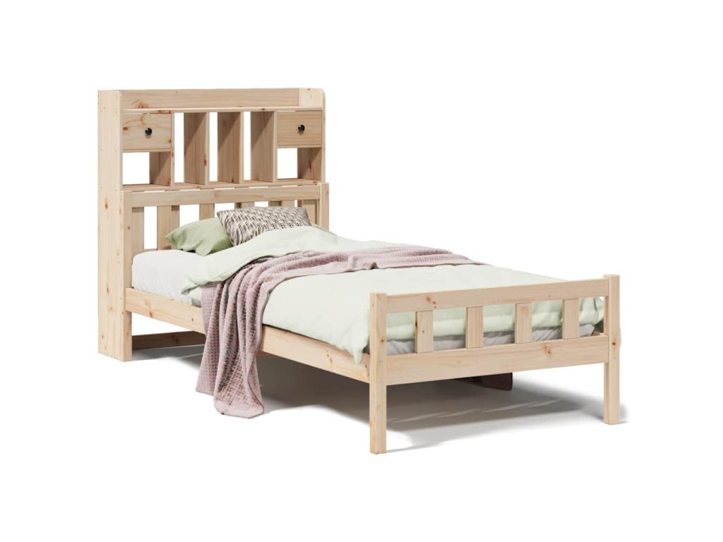 Postel s knihovnou bez matrace 90 x 190 cm masivní borovice 3322158