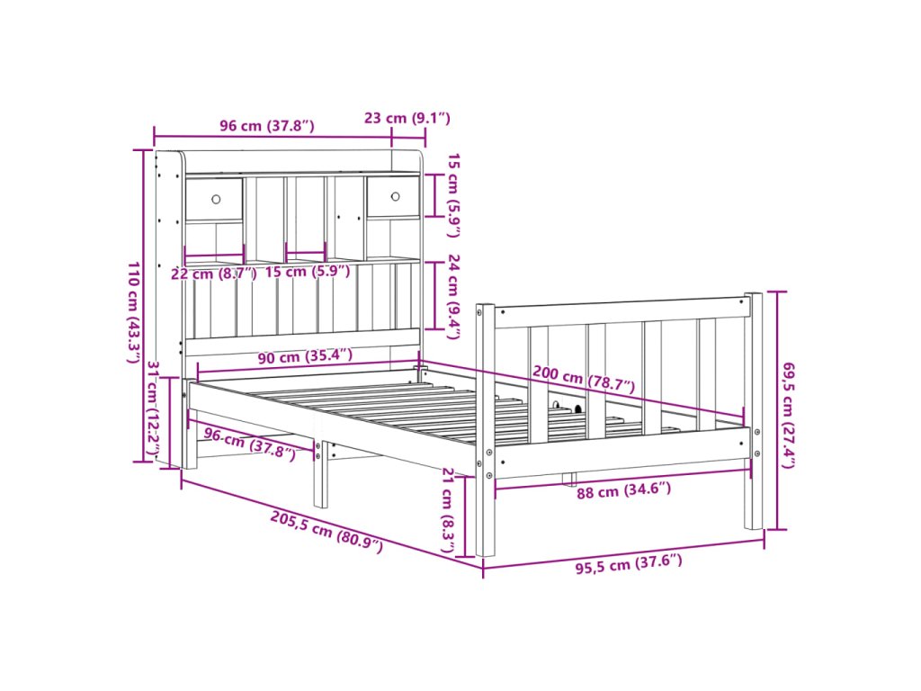 - Vhodné rozměry matrace: 90 x 200 cm (Š x D) (matrace není součástí balení)
