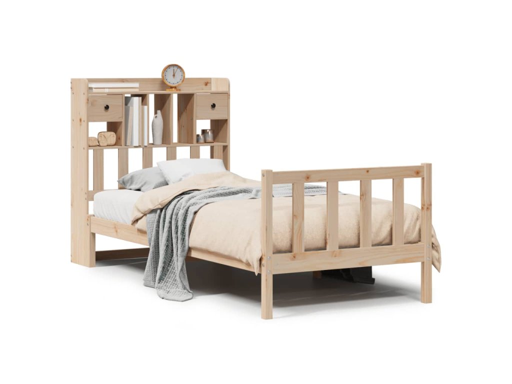 Postel s knihovnou bez matrace 90 x 200 cm masivní borovice 3321737